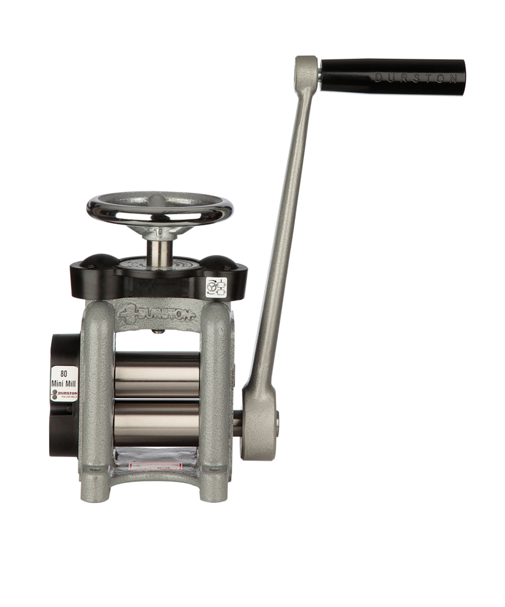 Adjust this Rolling Mill with ease using the top mounted wheel, calibrated to give precise accuracy, as with all Durston Rolling Mills in the MINI Range, the more compact body is solid cast iron giving ultimate strength, which combined with RC64 induction hardened rolls ensures a lifetime of rolling with professional results.